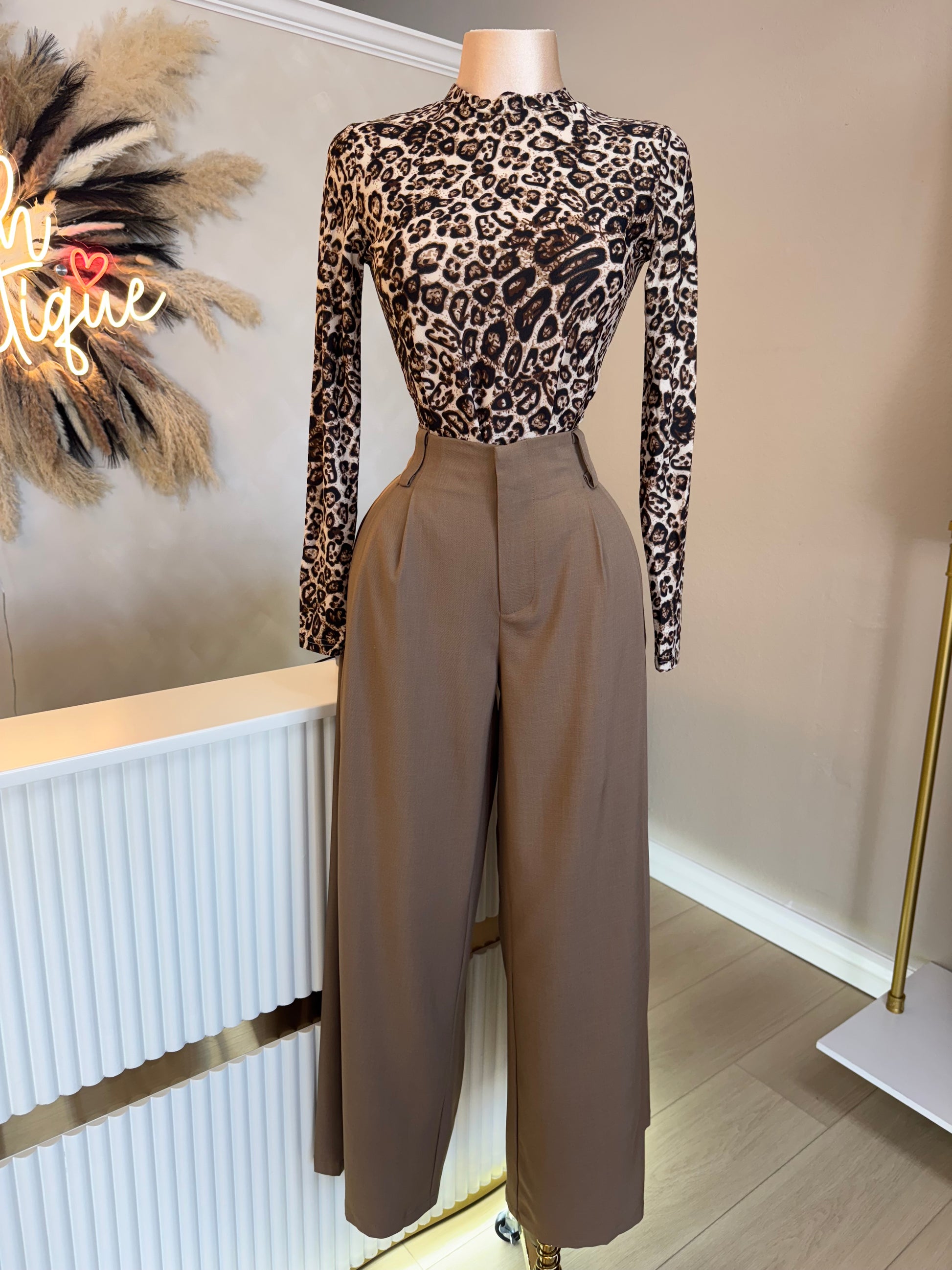 Animals print mock neck bodysuit