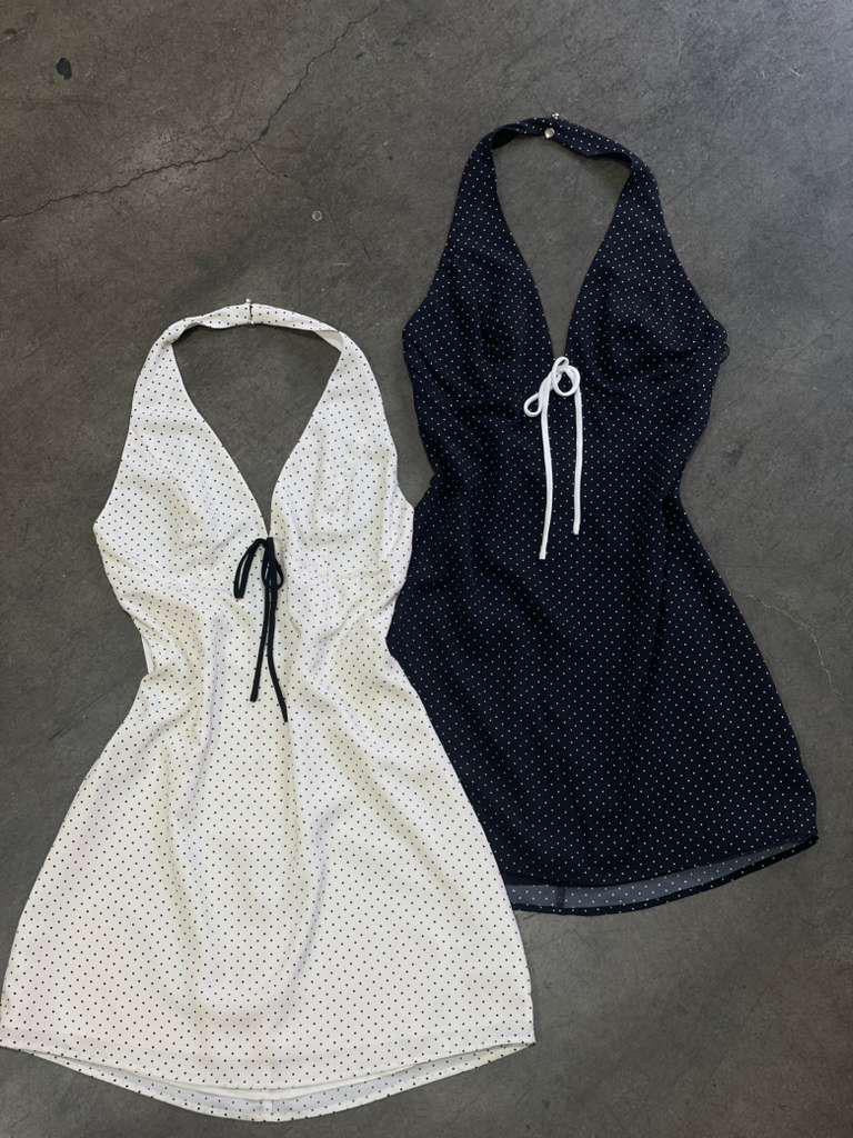 Polka dot flowy dress (black)